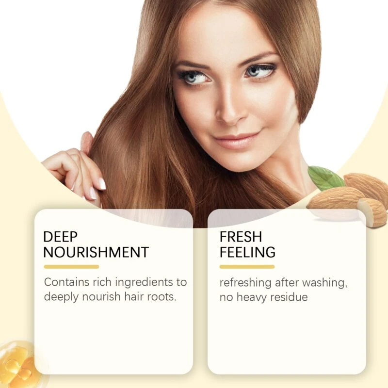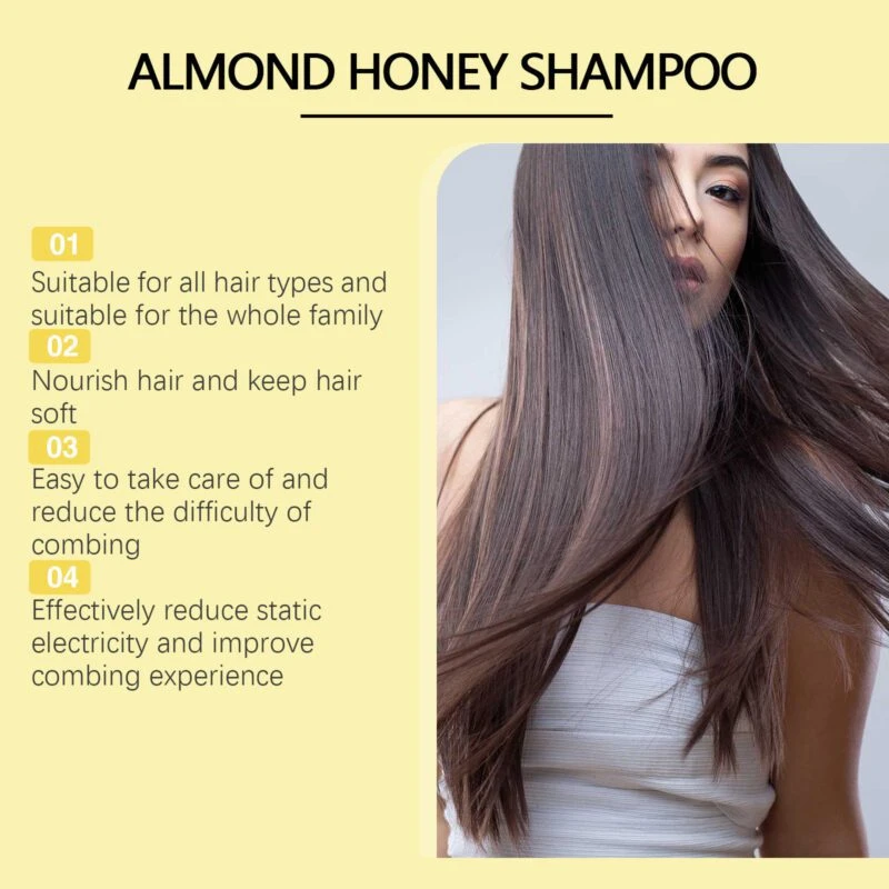 Our Almond Honey Shampoo is formulated with nourishing ingredients including glycerin, tocopherol (vitamin E), and cocamidopropyl betaine. This shampoo helps enhance hair’s natural shine, improve softness, and boost elasticity while providing moisturizing benefits for smoother hair.
