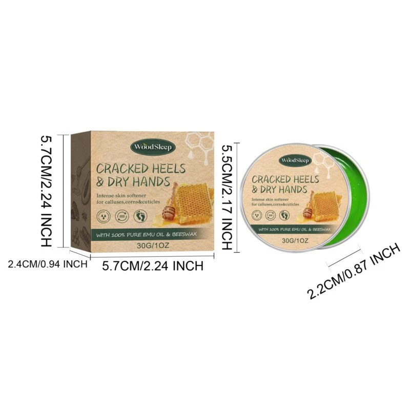 WoodSleep Hand and Foot Care Cream with glycerin, mineral oil, and emu oil provides intensive moisturization for dry, cracked skin. This lightweight formula helps: