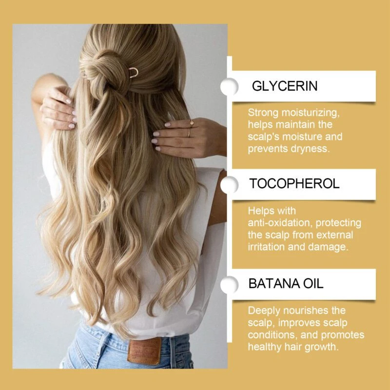 Enriched with keratin and Batana oil, this hair care cream soothes dry scalp while reducing discomfort. It provides deep nourishment to improve scalp health and hydration.