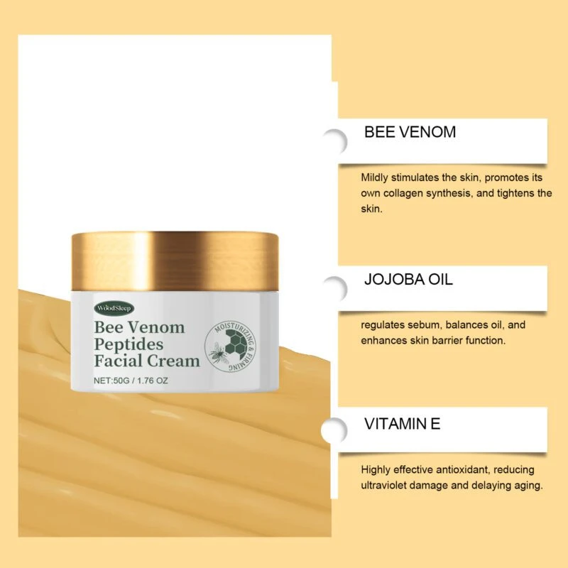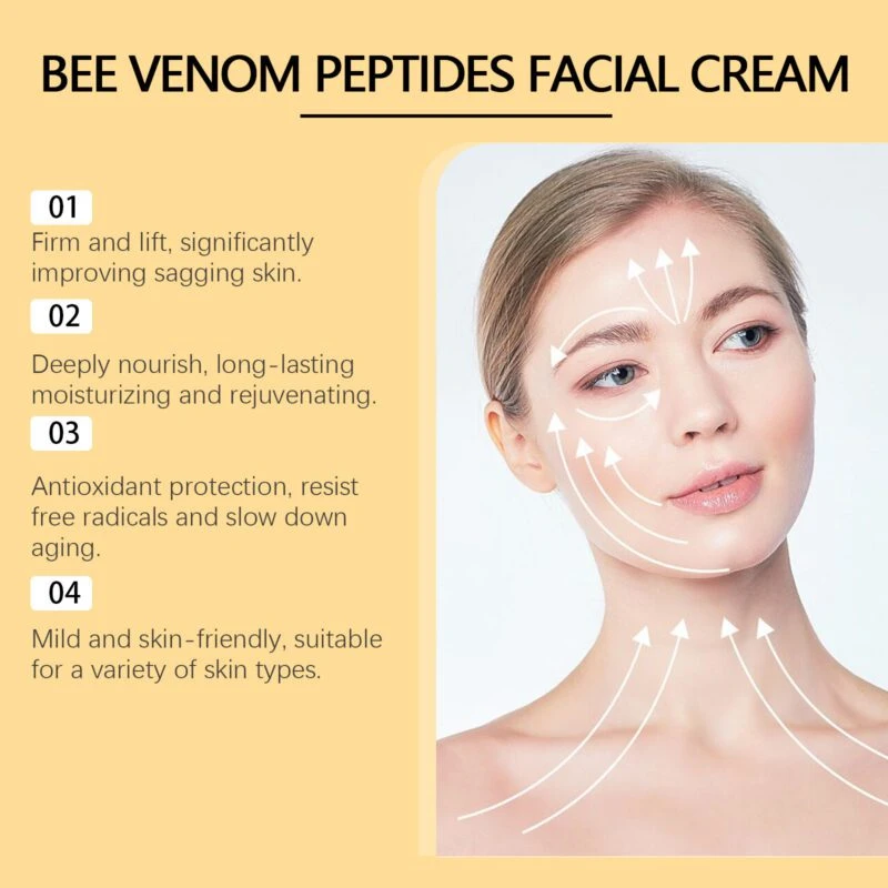 Our bee venom anti-wrinkle cream is enriched with vitamin E and coffee extract. This formulation may help support collagen production and improve skin firmness while providing antioxidant protection against environmental stressors.