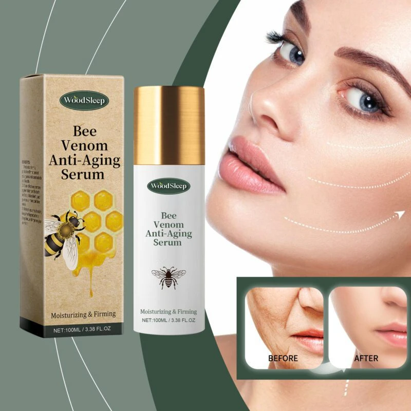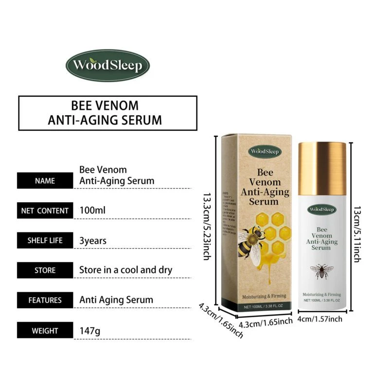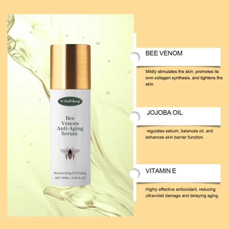 Woodsleep Bee Venom Essence combines vitamin E and coffee extract in a lightweight facial serum. This formula delivers multiple skincare benefits: