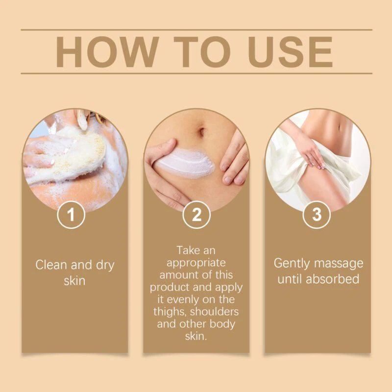 - Apply evenly on body areas like thighs and shoulders