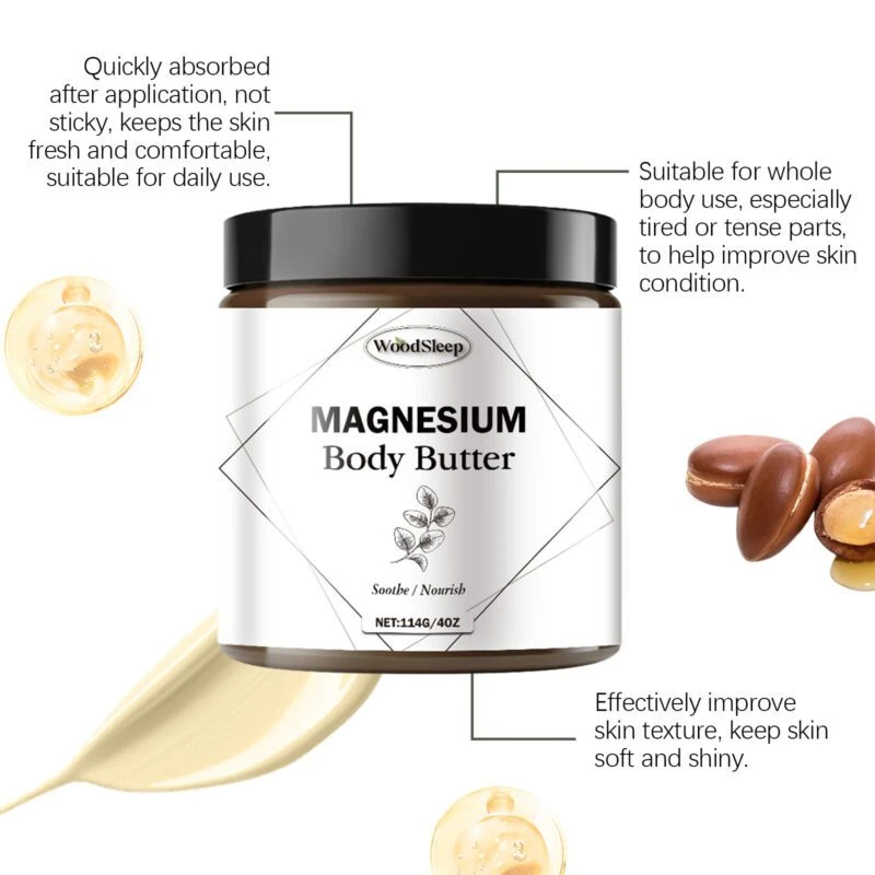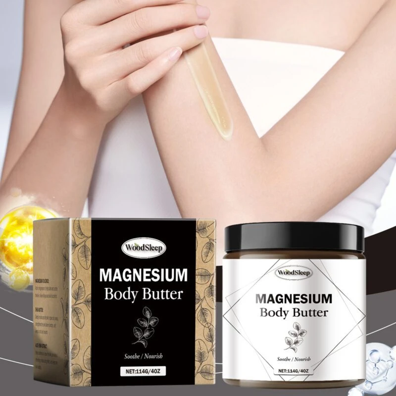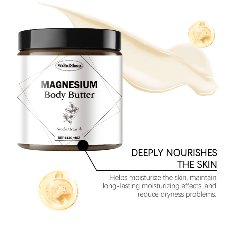 WoodSleep Body Magnesium Moisturizer blends glycerin, magnesium chloride, and shea butter to hydrate and nourish skin. This lightweight cream absorbs quickly, leaving skin feeling soft and silky.