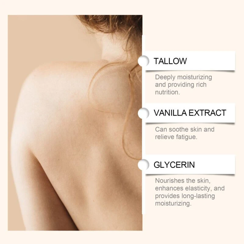 Our Butter Moisturizing Vanilla Body Cream contains tallow, vanilla extract, and glycerin to deeply moisturize and nourish skin. This rich formula helps soothe discomfort while strengthening the skin’s natural barrier and reducing the appearance of redness.