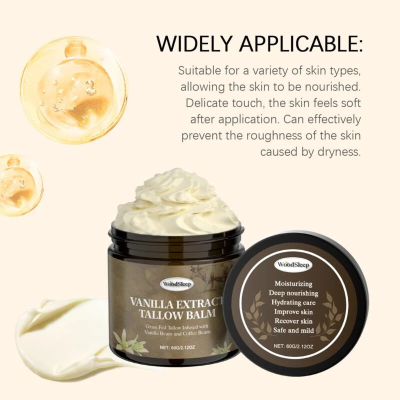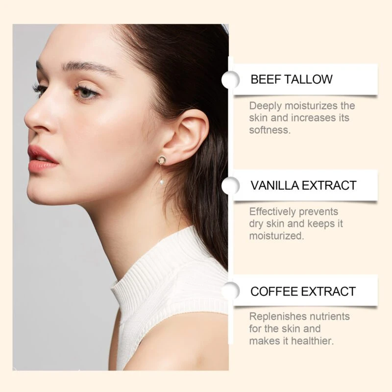 Our butter skin moisturizer contains natural ingredients like tallow, vanilla extract, and coffee extract. It deeply hydrates skin while providing soothing comfort and a healthy glow.