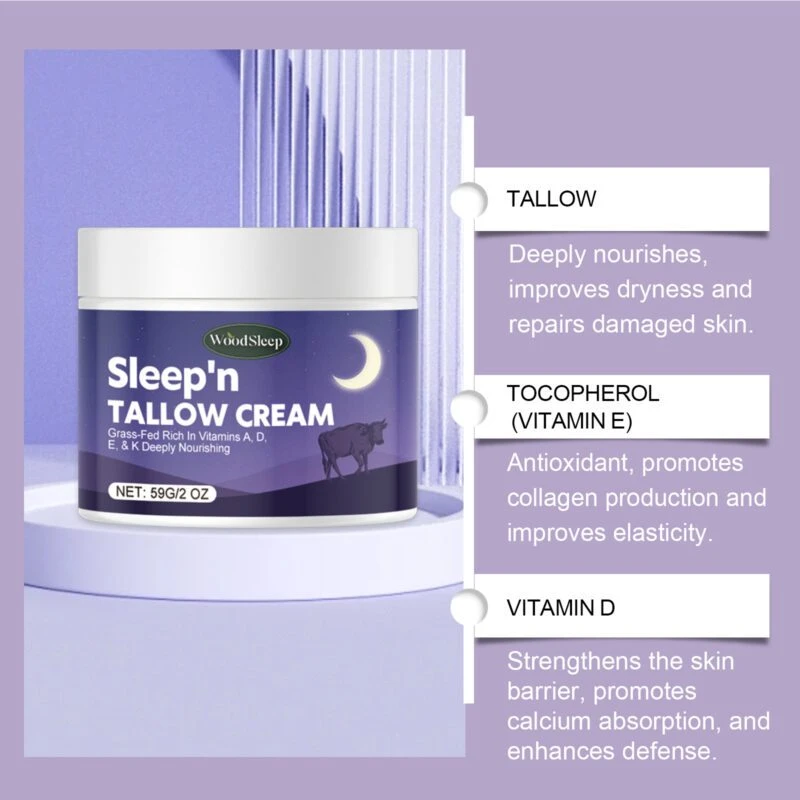 WoodSleep Butter Sleep Night Cream contains tallow, tocopherol (vitamin E), and vitamin D to deeply nourish and moisturize dry skin while helping repair damage. This cream enhances skin elasticity and reduces the appearance of fine lines for rejuvenated skin.