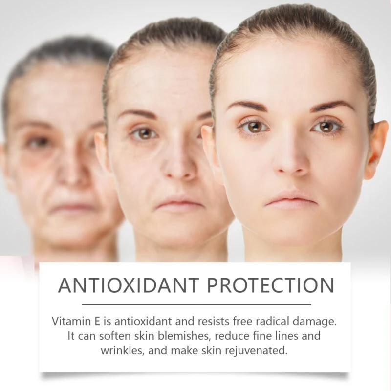 Vitamin E provides antioxidant protection against free radicals, helps soften skin blemishes, and supports a smoother complexion.