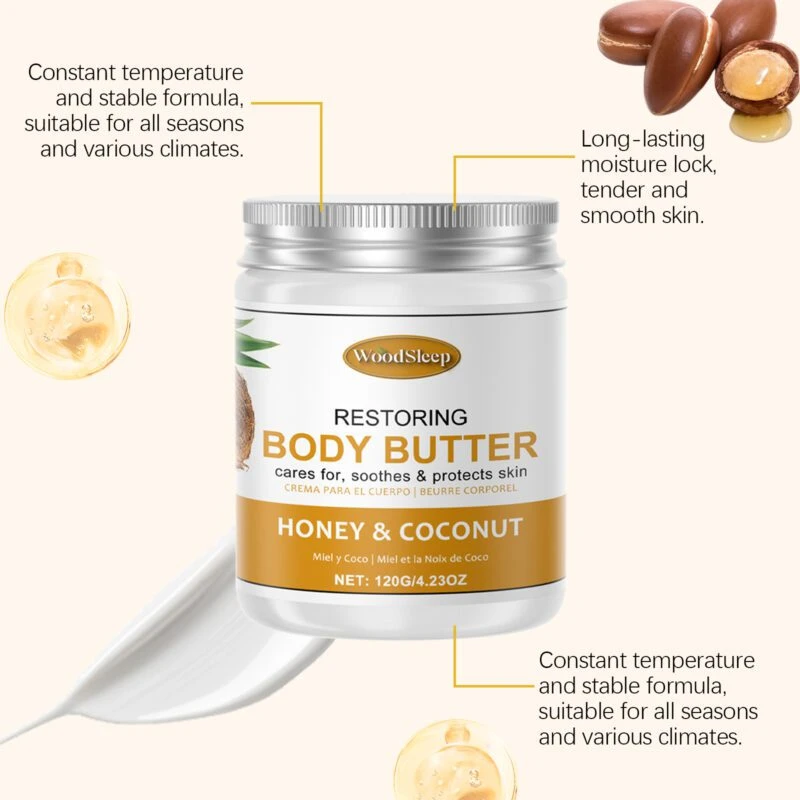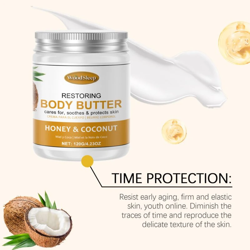 WoodSleep Coconut Moisturizing Butter is a hydrating body lotion enriched with coconut oil and honey. This gentle formula provides long-lasting moisture while strengthening the skin’s natural barrier and enhancing resilience.