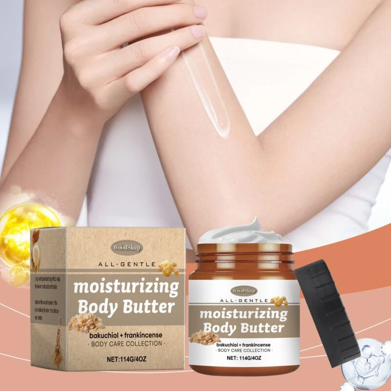 Our Frankincense Body Butter Moisturizer blends shea butter, frankincense, and psoralen to revitalize skin. This nourishing formula improves dullness while leaving skin smooth and radiant.