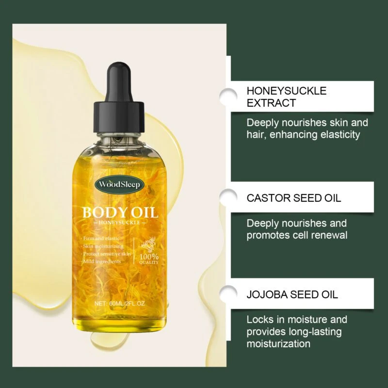 Our handmade Honeysuckle multi-purpose body oil blends mineral oil and jojoba seed oil to deeply hydrate and nourish skin. This lightweight formula helps condition skin while providing lasting moisture.