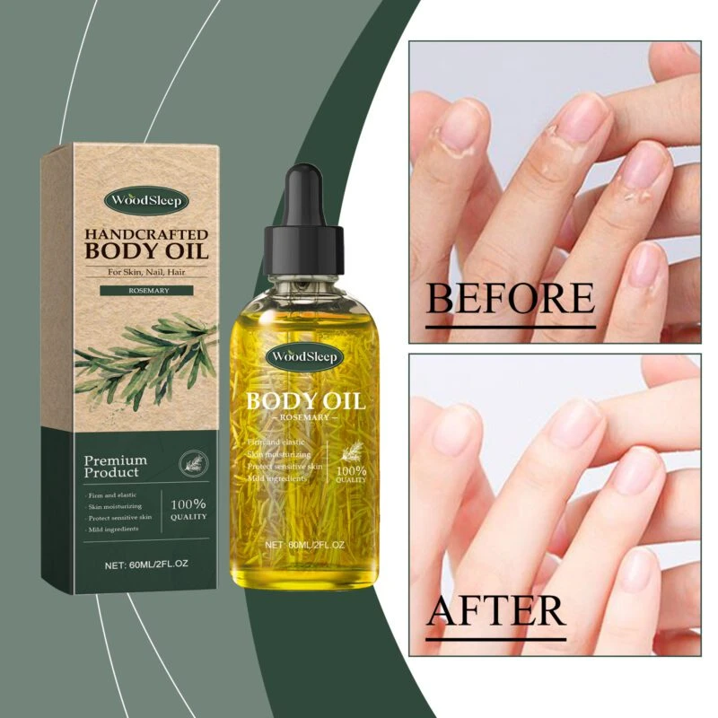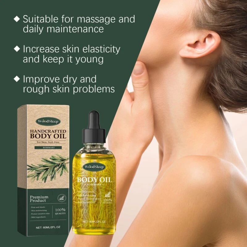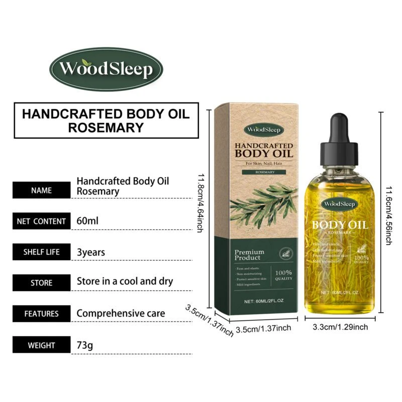 Our artisanal rosemary multipurpose body oil blends mineral oil and jojoba seed oil to hydrate and condition skin, hair, and nails.