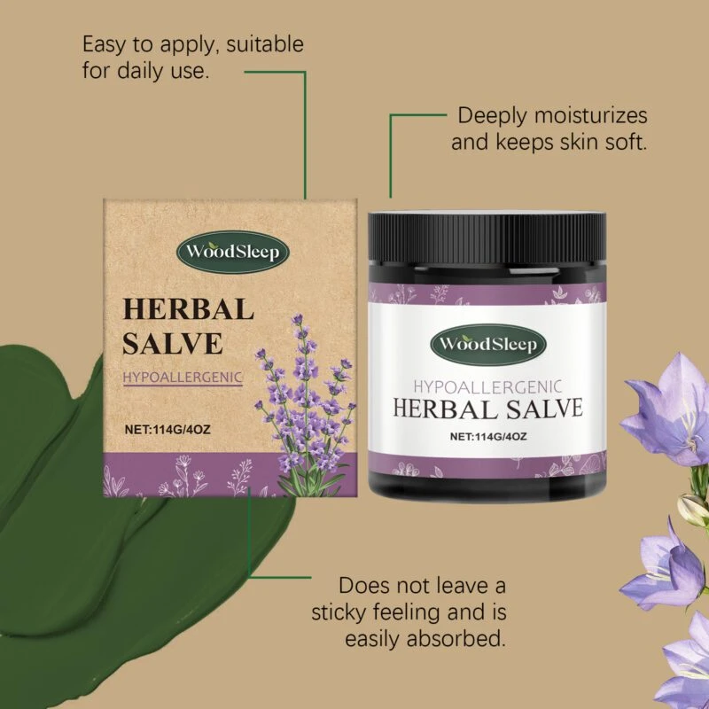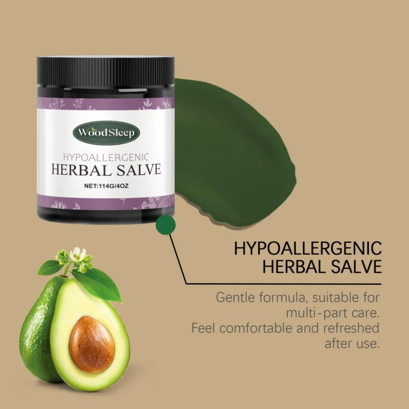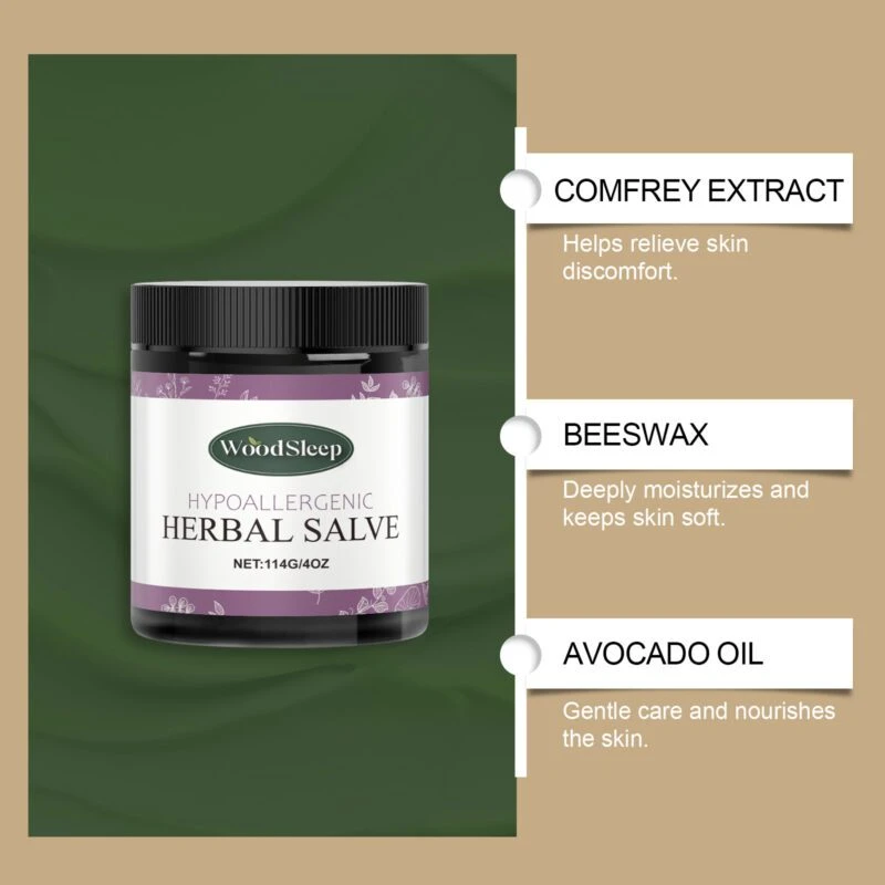 WoodSleep Herbal Soothing Balm features a natural blend of comfrey extract, beeswax, and avocado oil. This topical formula is designed to provide soothing comfort during massage while promoting skin hydration.