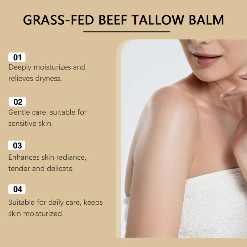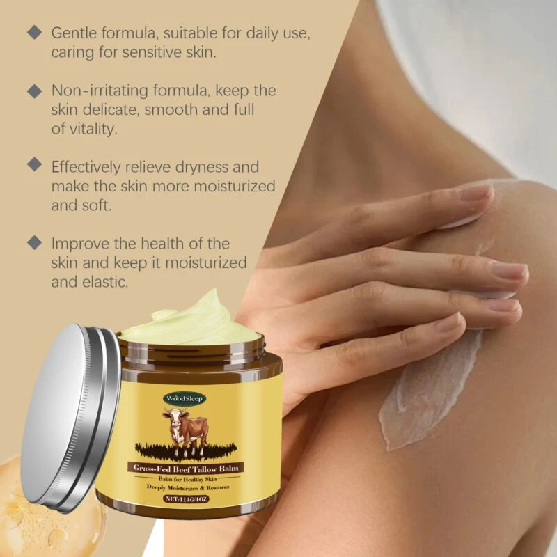 Formulated with natural beef tallow, honey, and olive oil, this deeply nourishing cream moisturizes and softens skin while improving elasticity. Helps relieve dryness for a radiant complexion throughout the day.