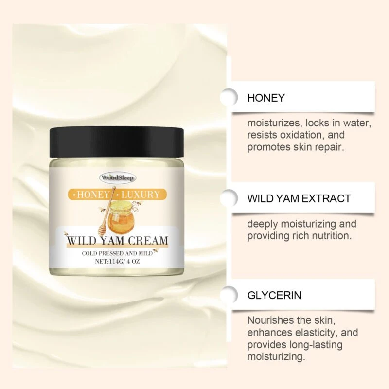 Our honey moisturizing cream contains honey, wild yam extract, and glycerin. It deeply moisturizes the skin and maintains hydration throughout the day.