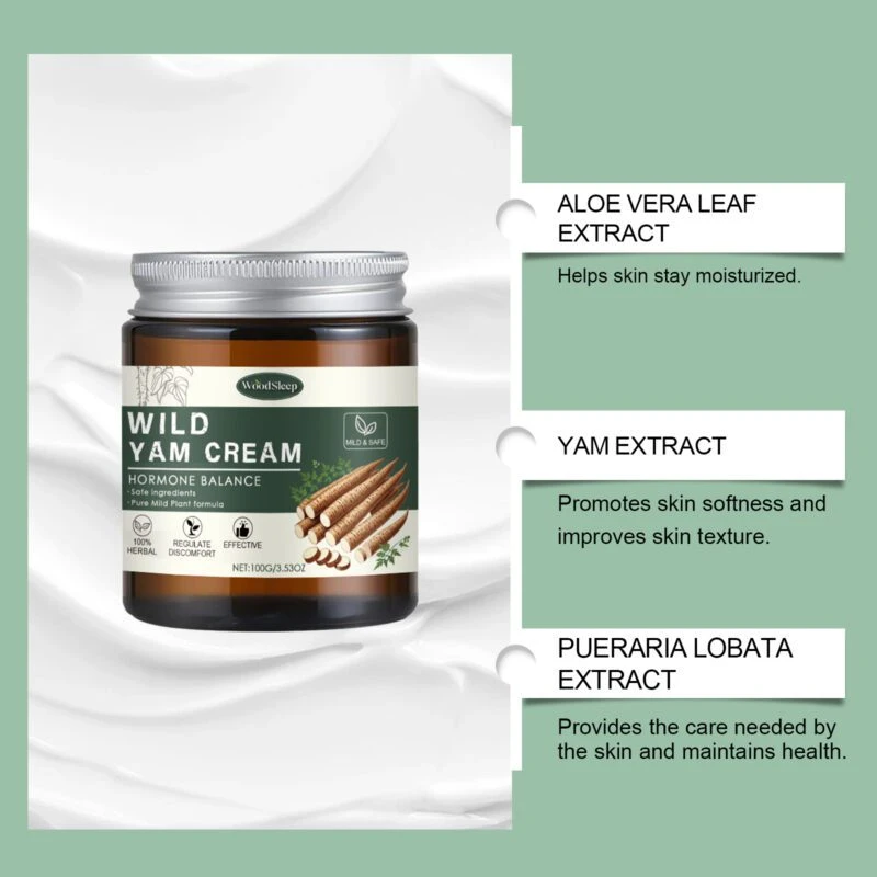 Woodsleep Lady Care Yam Cream features glycerin, mineral oil, and glycerin stearate to deeply nourish and moisturize skin. This gentle formula provides long-lasting hydration for daily body care.