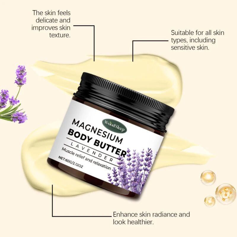 Experience long-lasting hydration with Woodsleep Lavender Magnesium Body Cream, formulated with glycerin and mineral oil. This lightweight formula absorbs quickly without greasy residue, providing all-day moisturization for your skin.