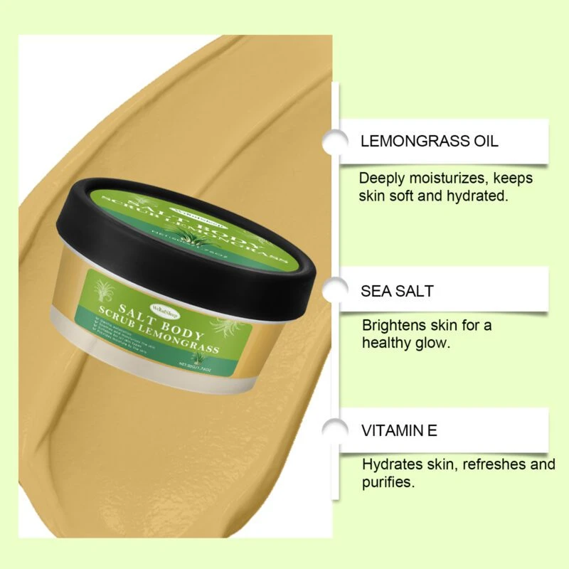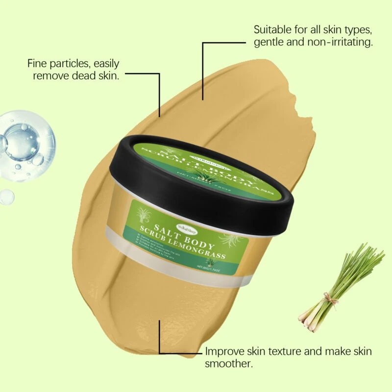 Our lemongrass body scrub contains mineral oil and silica to gently exfoliate dead skin cells and restore smoothness. This nourishing formula moisturizes skin and helps maintain hydration.