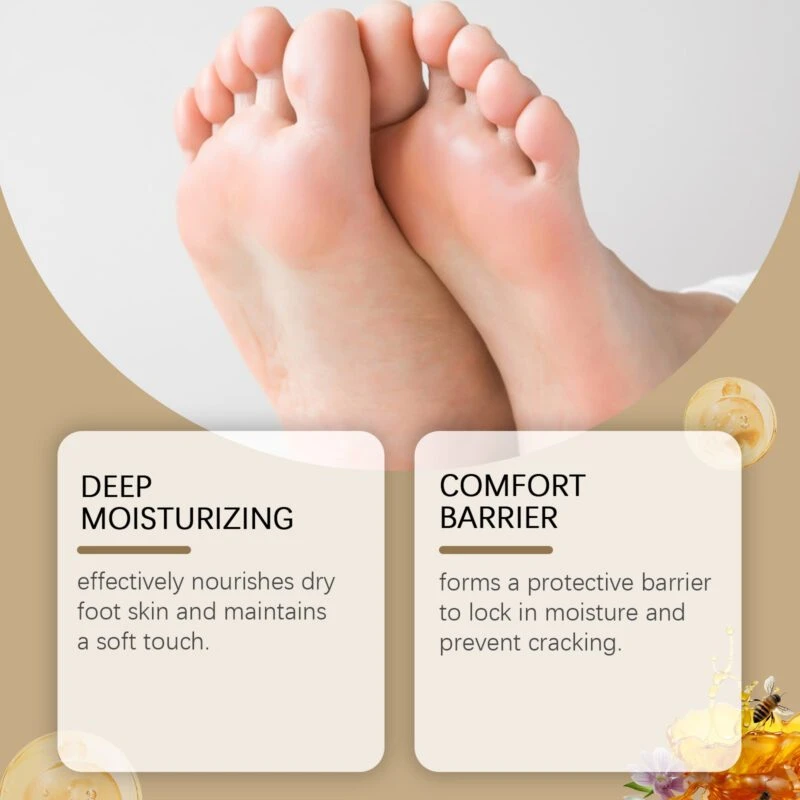 Our protective foot cream contains triethanolamine, cocoa butter, and avocado butter to moisturize dry, cracked areas while restoring comfort and elasticity.