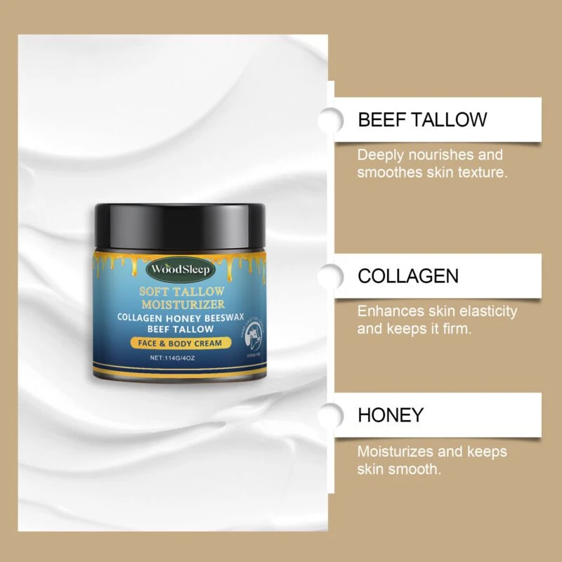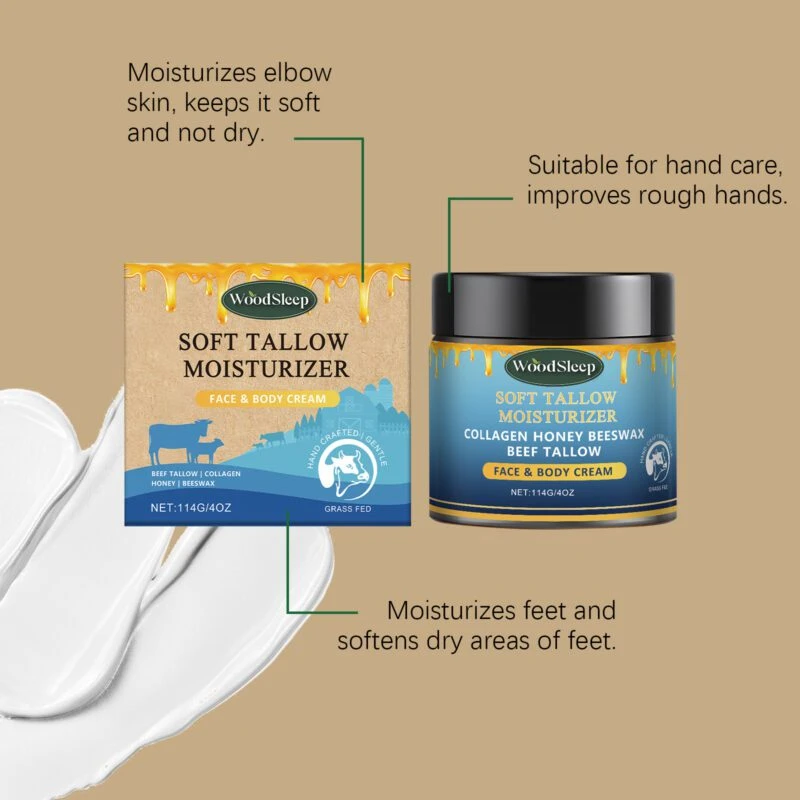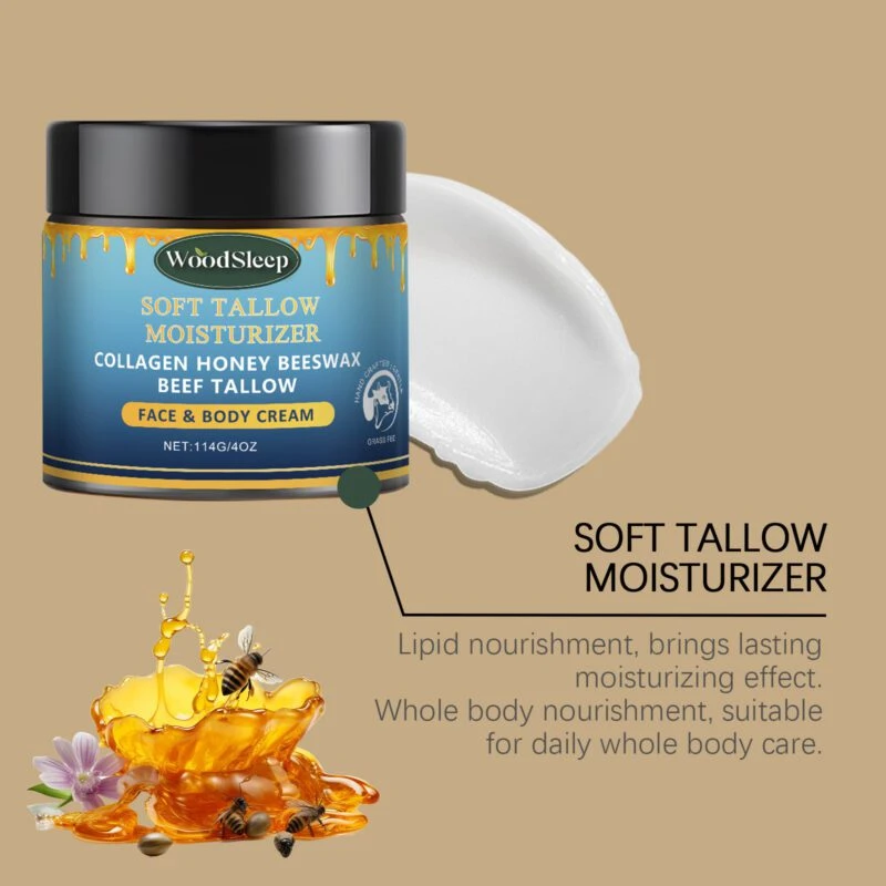 Our moisturizing body cream, enriched with tallow, collagen, and honey, deeply nourishes and smooths skin texture while enhancing elasticity and firmness. This gentle formula moisturizes to keep skin soft and supple.