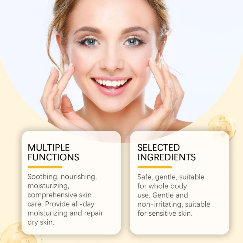 Our multifunctional cream features glycerin and cetyl stearol to soothe, nourish, and moisturize skin. Provides daily hydration while repairing dryness with a gentle formula suitable for full-body use.
