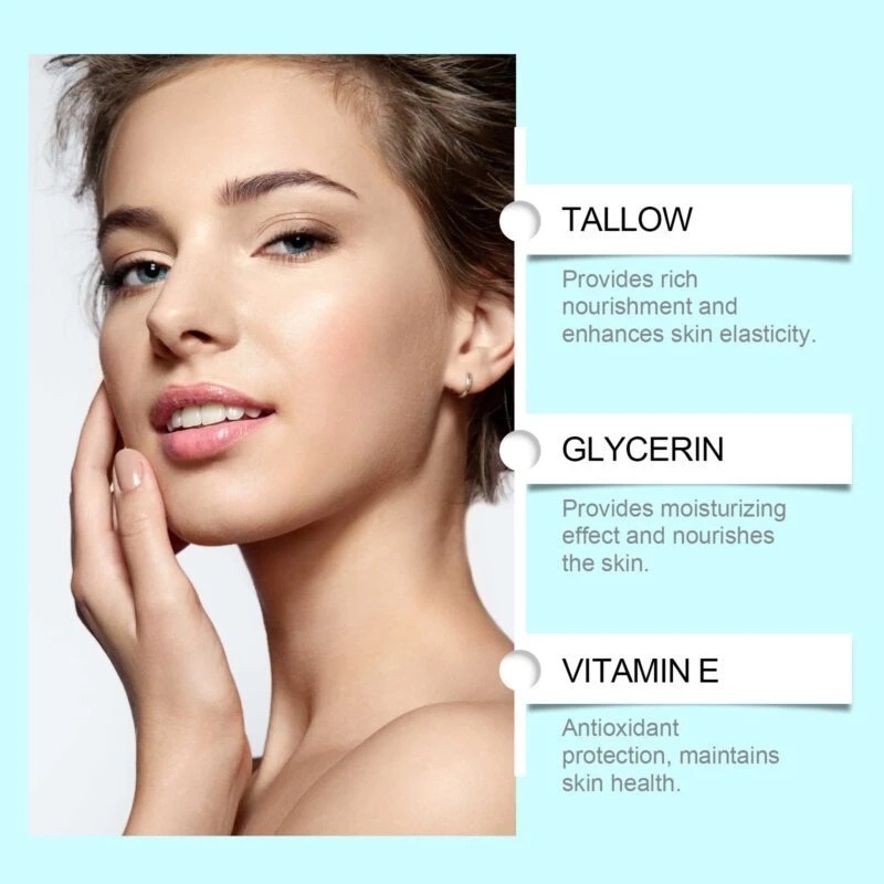 Our nourishing skin soothing cream contains tallow and vitamin E (tocopherol). It moisturizes while leaving skin smooth and delicate. Suitable for various climates.