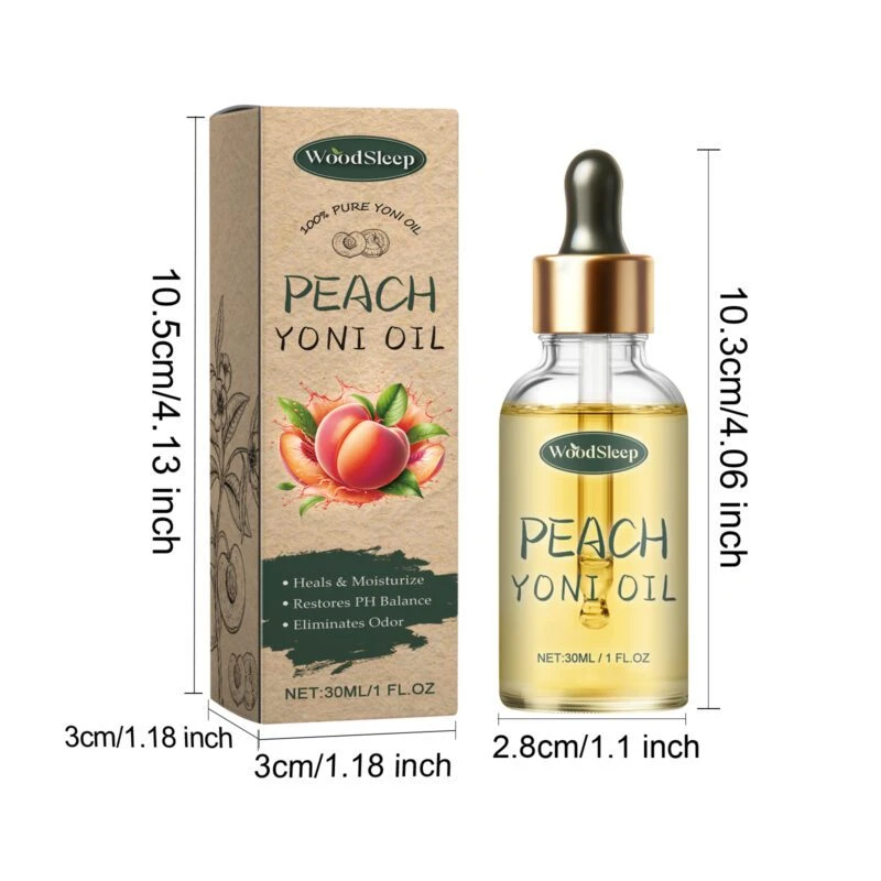 WoodSleep Peach Yoni Oil blends natural Prunus Persica (Peach) Kernel Oil, Rose Flower Oil, and Carthamus Tinctorius (Safflower) Seed Oil. This formula helps soothe skin and retain moisture for intimate comfort.