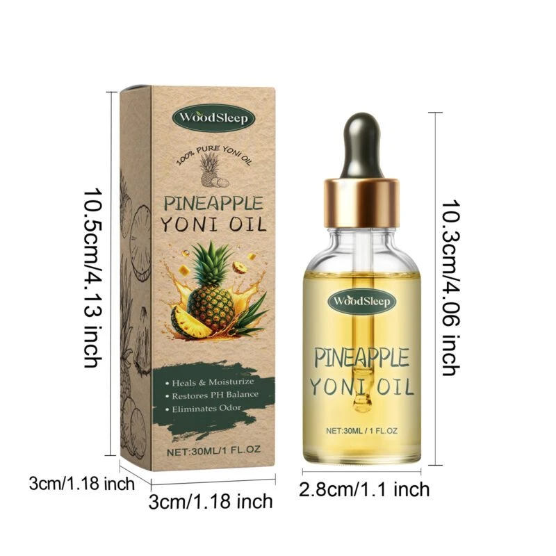 Our Pineapple Yoni Oil features natural ingredients including Ananas Sativus (Pineapple) Fruit Extract, Rose Flower Oil, and Carthamus Tinctorius (Safflower) Seed Oil. Formulated to soothe skin and help retain moisture, it also neutralizes unwanted odors.