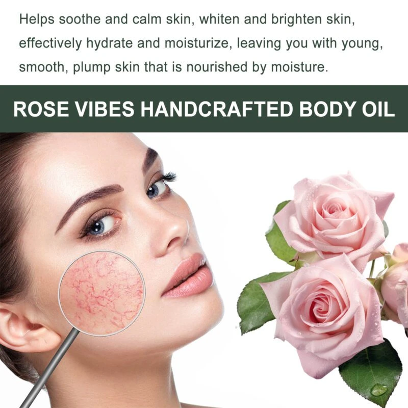 Our Rose Vibes Handcrafted Body Oil blends Rosa Rugosa Flower Oil, Sweet Almond Oil, and Coconut Oil to deeply nourish and moisturize your skin. This luxurious formula helps soothe and calm the skin while promoting a radiant complexion.