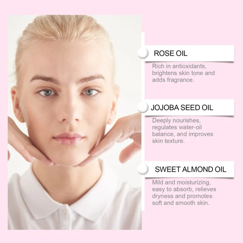 Our Rose Vitamin E Oil essence features rose oil, cactus extract, and tocopherol to deeply nourish skin while softening the cuticle and enhancing absorption. Helps reduce dryness and maintain optimal moisture balance.