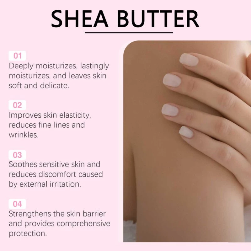 Our Shea Butter Skin Balm contains shea butter, coconut oil, and vitamin E. It soothes sensitive skin and strengthens the skin barrier. The mild, non-irritating formula is suitable for all skin types.