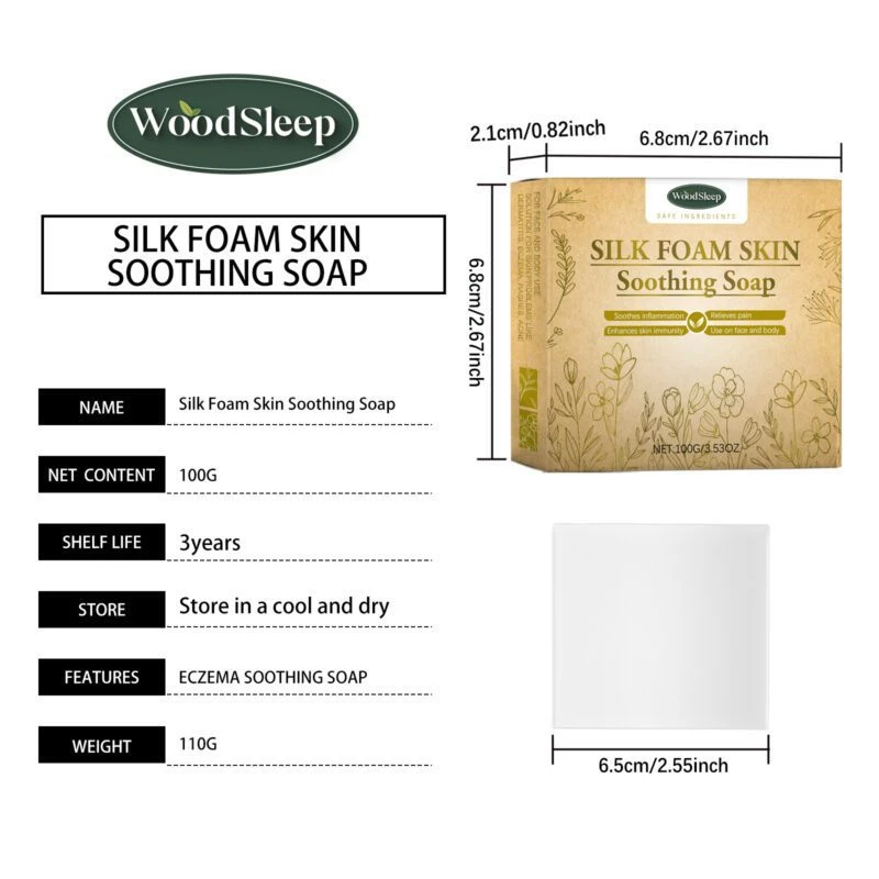 Woodsleep Skin Repair Soap features glycerin, evening primrose extract, and oat kernel extract to gently cleanse while soothing skin. This formula helps remove surface scales and improves skin texture through mild exfoliation and moisturization.