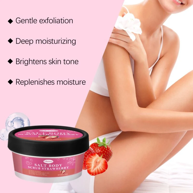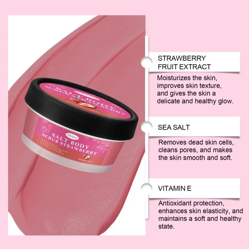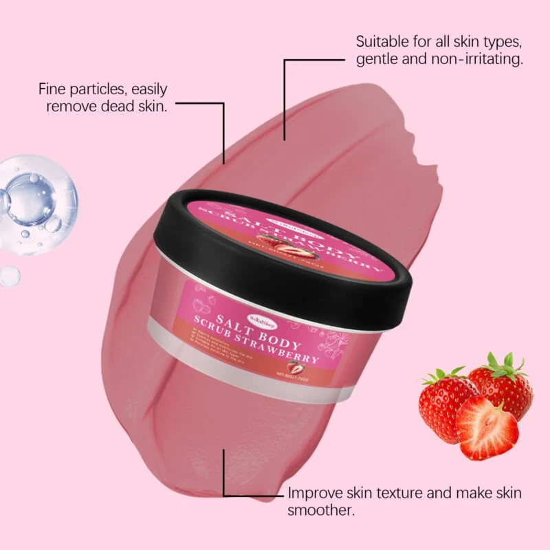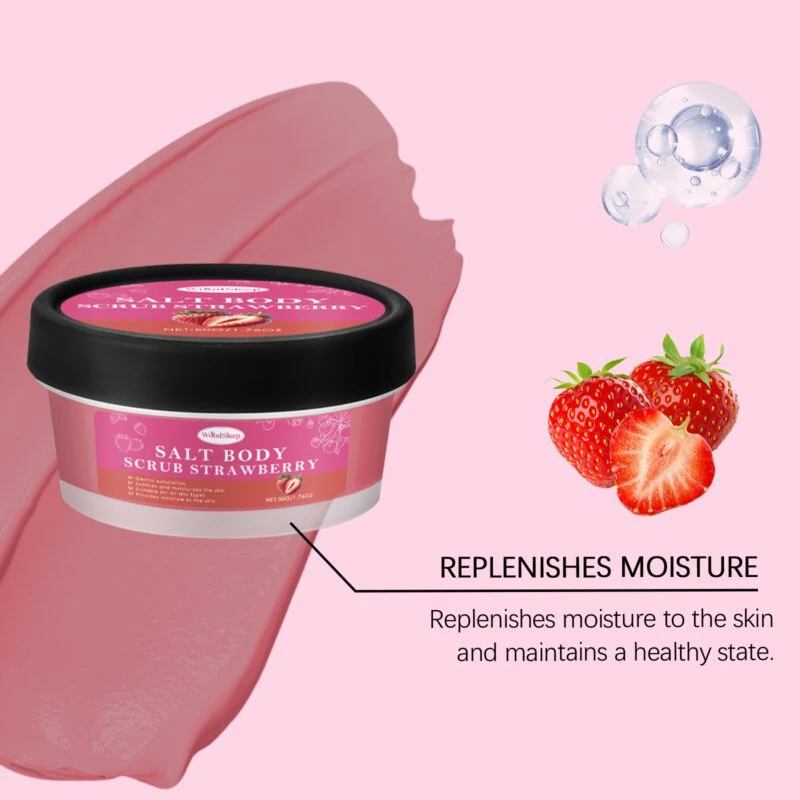Our Strawberry Body Scrub contains mineral oil and silica to gently exfoliate and nourish your skin. It removes dead skin cells to restore smoothness while deeply moisturizing for lasting hydration.