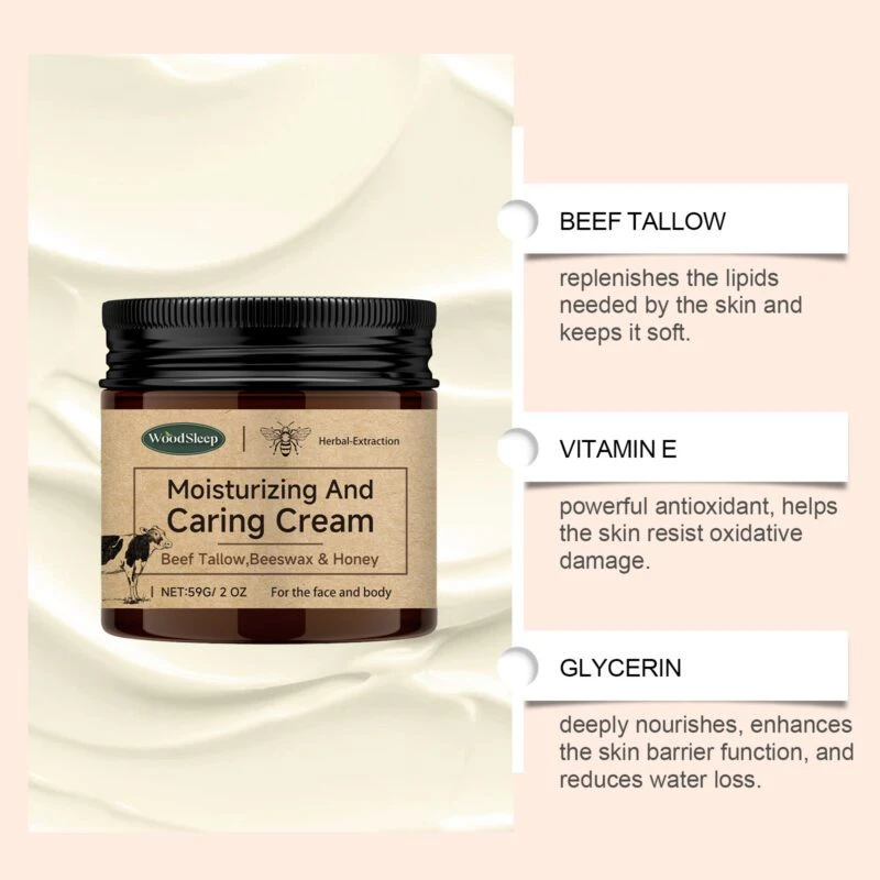 Our tallow moisturizing cream, enriched with glycerin and mineral oil, provides long-lasting hydration to leave skin feeling nourished. This nourishing formula delivers essential moisture to dry skin areas.
