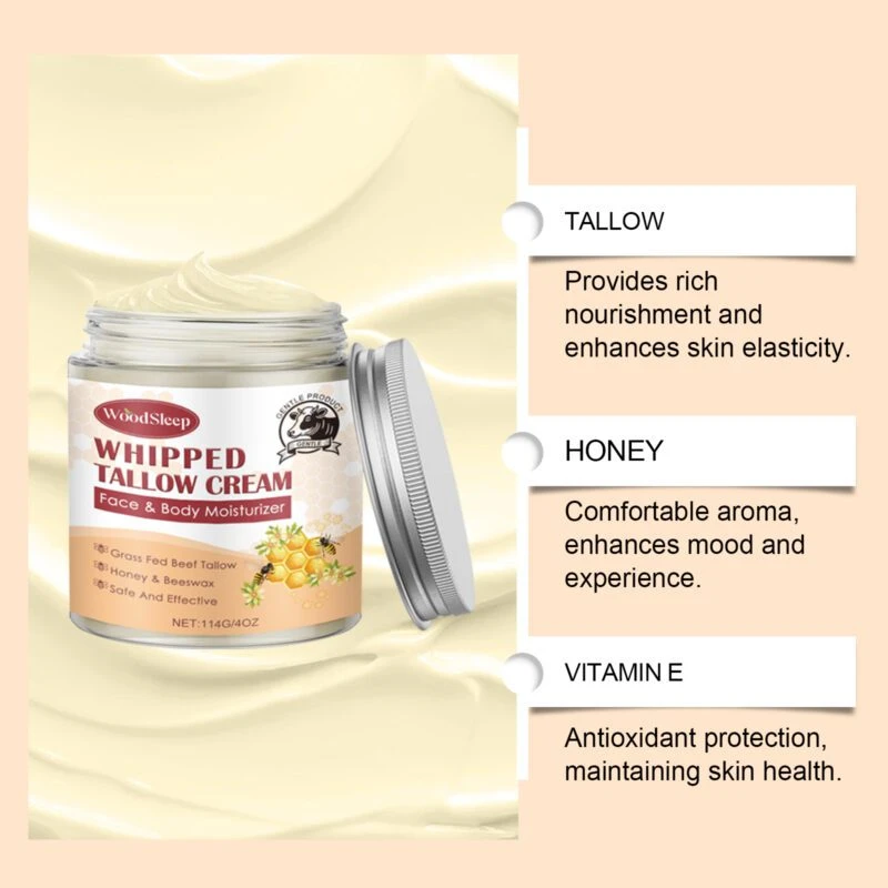 Our Tallow Skin Honey Cream blends tallow, honey, and beeswax to deliver rich nutrition and enhance skin elasticity. Enjoy a pleasant aroma that elevates your skincare experience while antioxidant protection helps maintain skin health.
