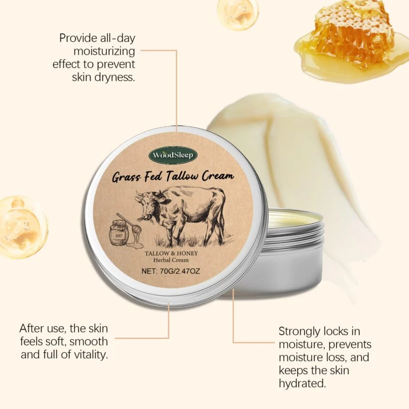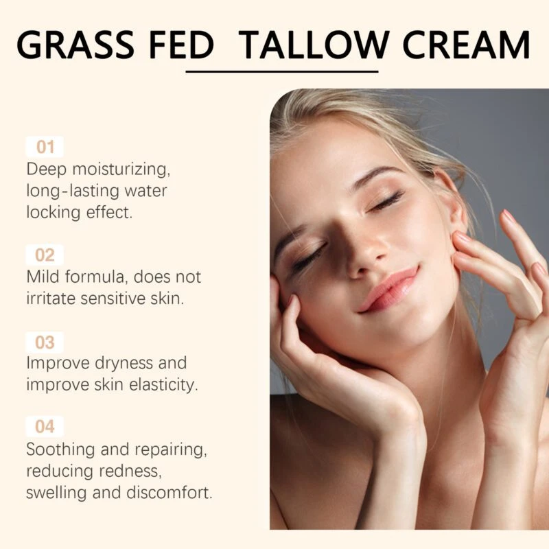 Our tallow skin moisturizer contains glycerin and glycerin stearate to effectively relieve skin discomfort while supporting skin barrier health. This gentle formula contains no irritating ingredients and is suitable for all skin types, including sensitive skin.