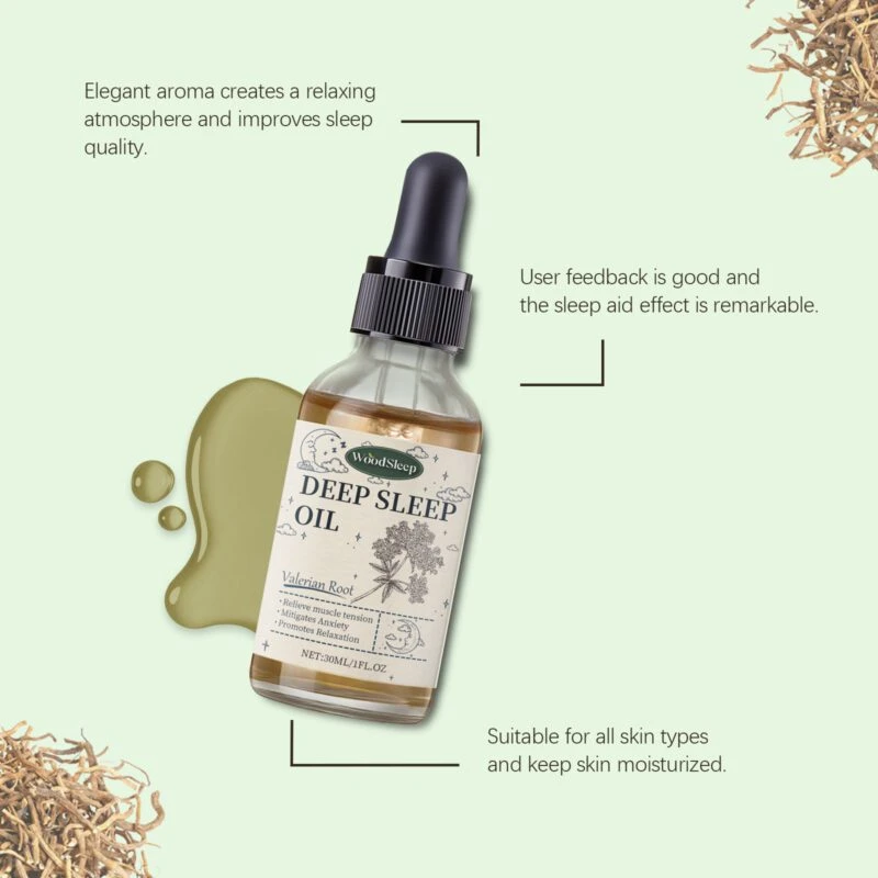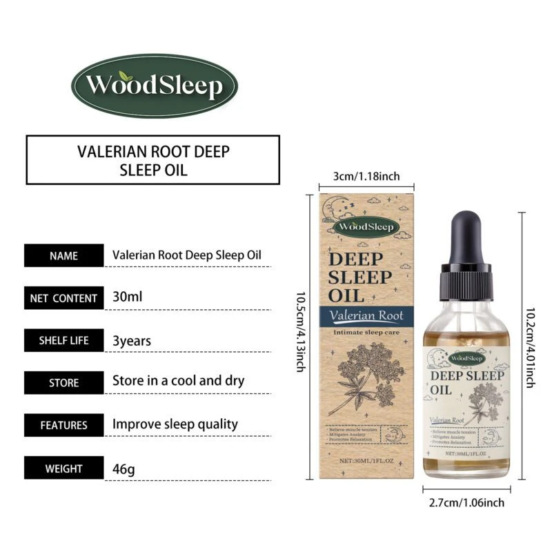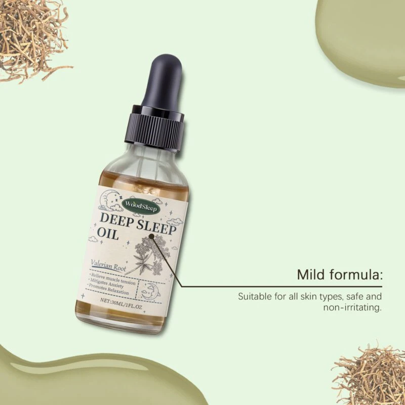 WoodSleep Valerian Root Essential Oil Blend combines mineral oil and jojoba seed oil to deeply nourish skin and maintain softness.